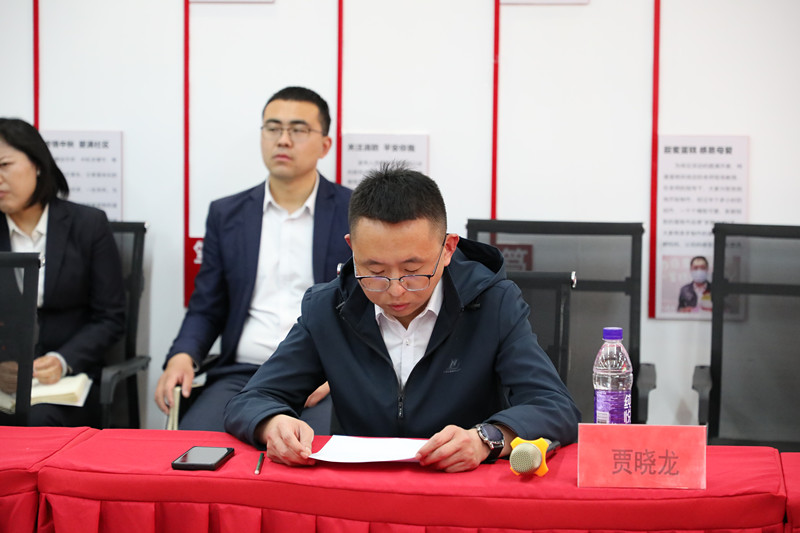 高新區長江街道聽瀾社區黨支部書記賈曉龍發表致辭,他表示,這場簽約儀式,意義深遠。這項工作逐步補齊社區的服務短板,打通服務群眾的最后“最后一公里”,讓居民就業不離鄉,就近有班上。以居民需求為導向,聯合企業為社區居民提供從職業測評到人事檔案管理一條龍式就業服務,讓居民感受到更加便民舒心的服務。本次的簽約必將實現雙方的互補,目標的共贏。在小社區里搭建起就業的大舞臺,讓社區充滿生機,群眾生活充滿溫度。